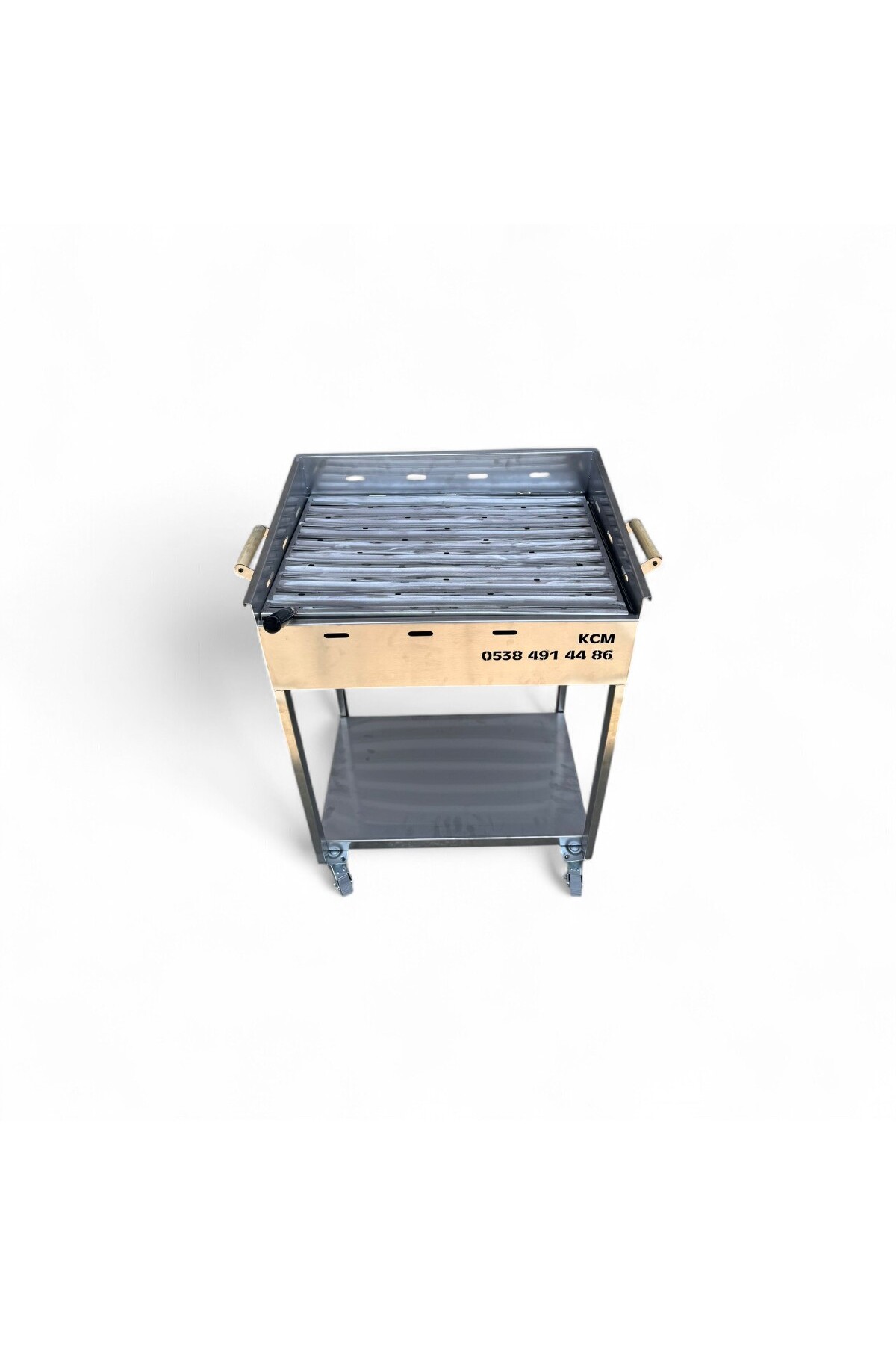304 Kalite Krom Oluk Izgaralı Tekerlekli Mangal – 40x60 cm